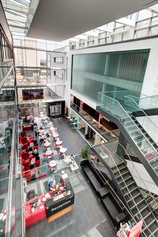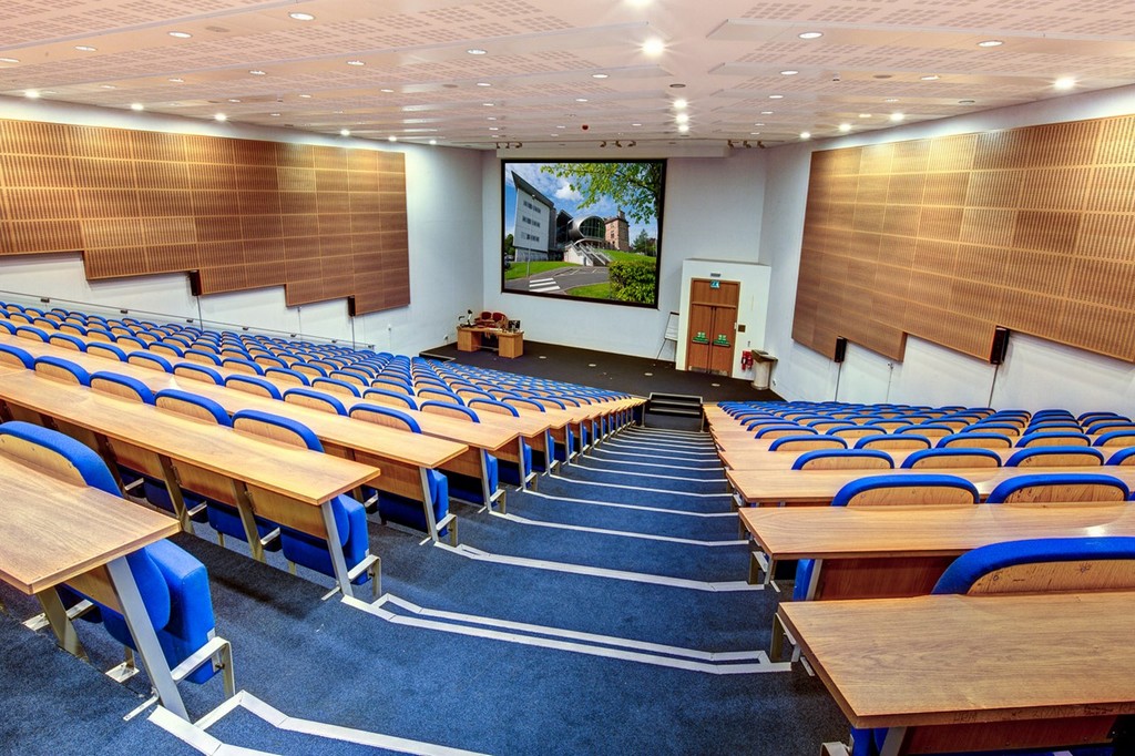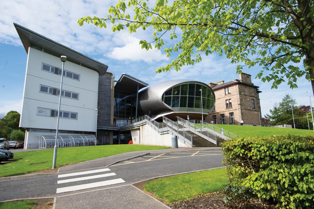 Escuela moderna: Craiglockhart Campus de Edinburgh Napier University con aulas multimedia, laboratorios, biblioteca, zonas comunes y auditorio.